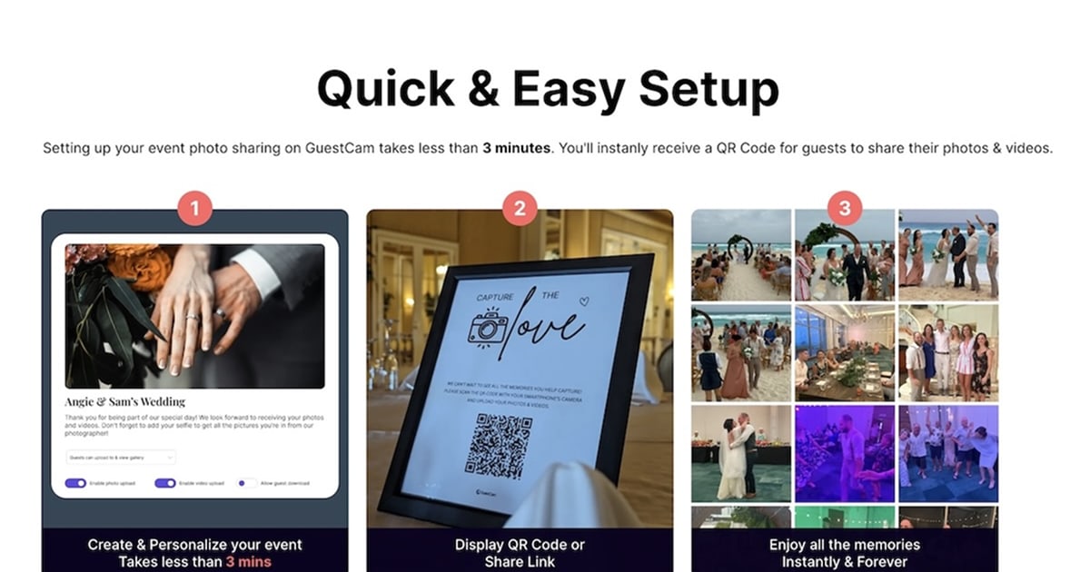 Un'opzione solida per chi cerca soprattutto raccolta foto via QR code con live wall e qualche funzione organizzativa in più (RSVP, inviti). Ma non copre l'intera gestione dell'evento.